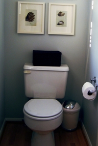 Dark colors feel confining, especially in small bathroom areas. The light color should not be too bright, since bright tones on a wall tend to make the wall seem closer, the opposite of what you want. Light to medium whites, off-whites, blues, greens, yellows, pinks and grays are the most popular paint choices for small bathrooms.